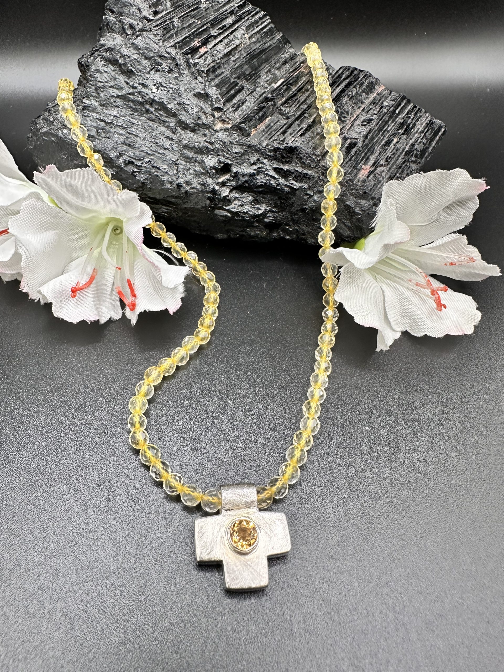 Citrinkette mit Kreuz Anhänger