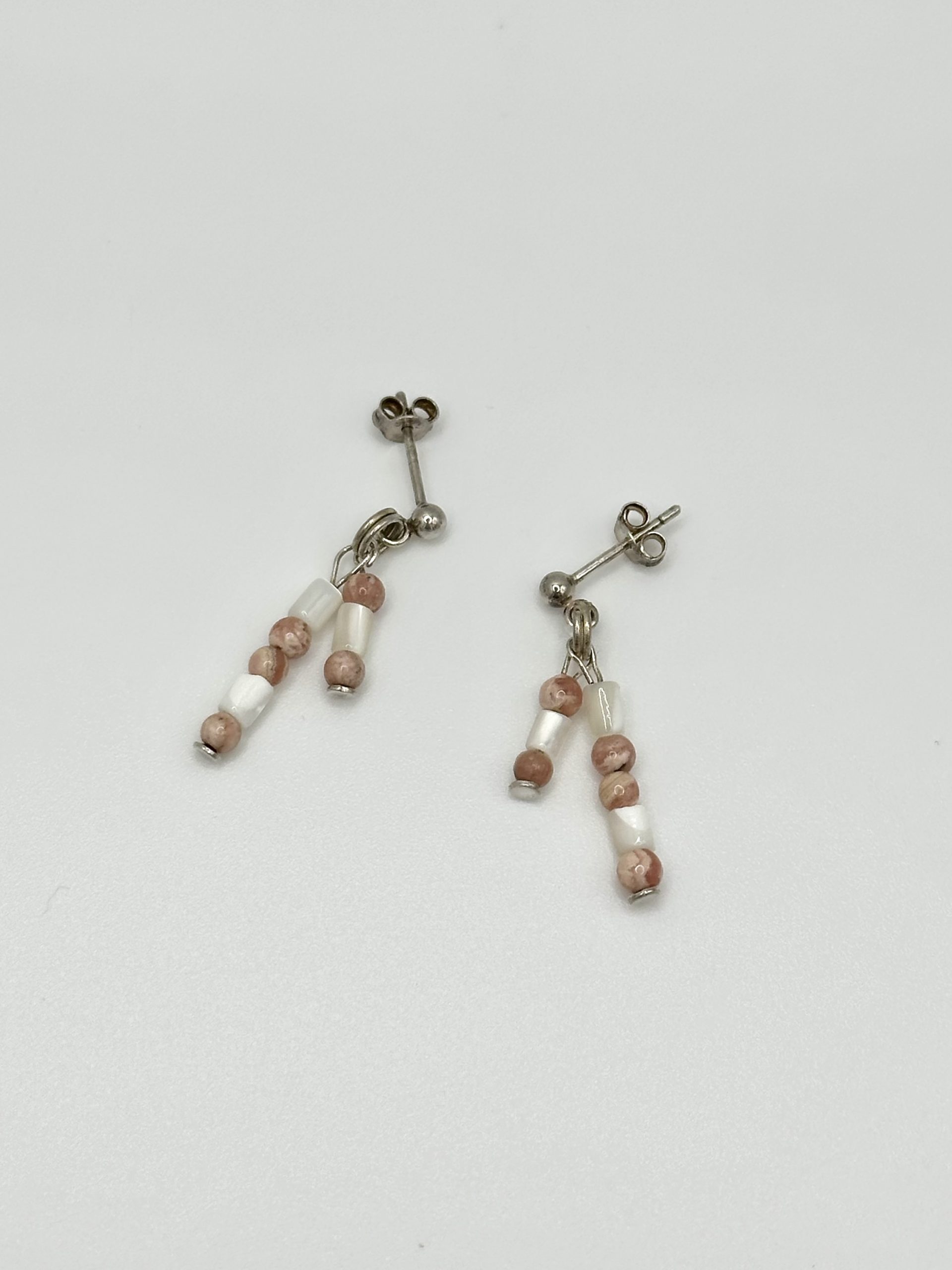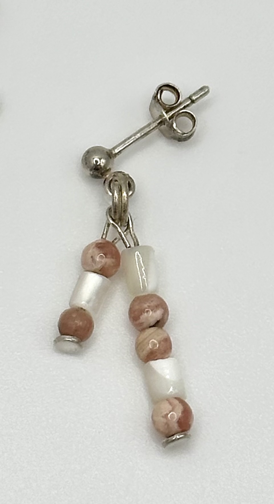 Diese wunderschönen Ohrstecker habe ich in liebevoller Handarbeit gefertigt. Ich habe 4 mm große Rhodochrositkugeln und 3 x 4 mm Perlmuttwalzen verwendet.