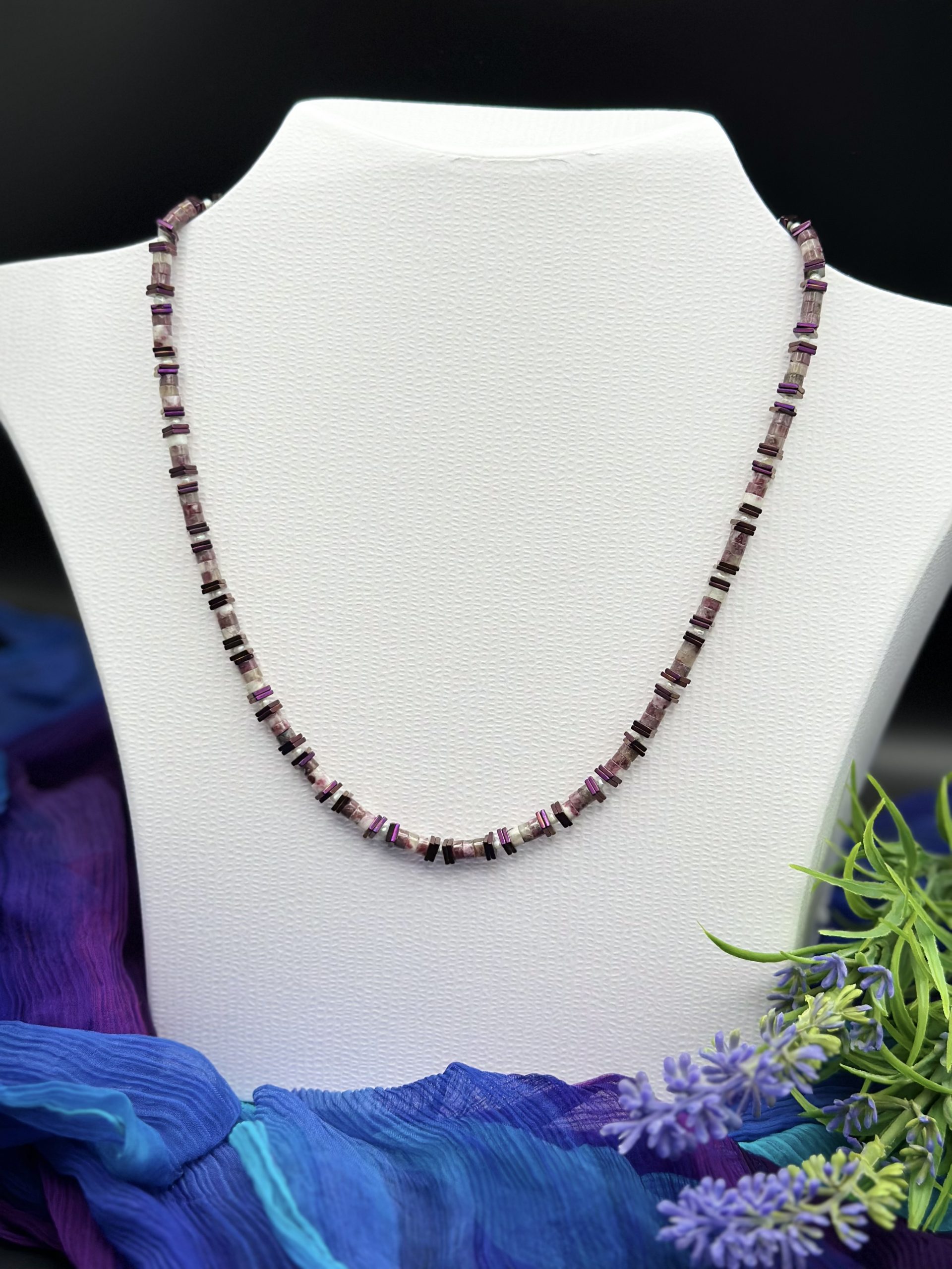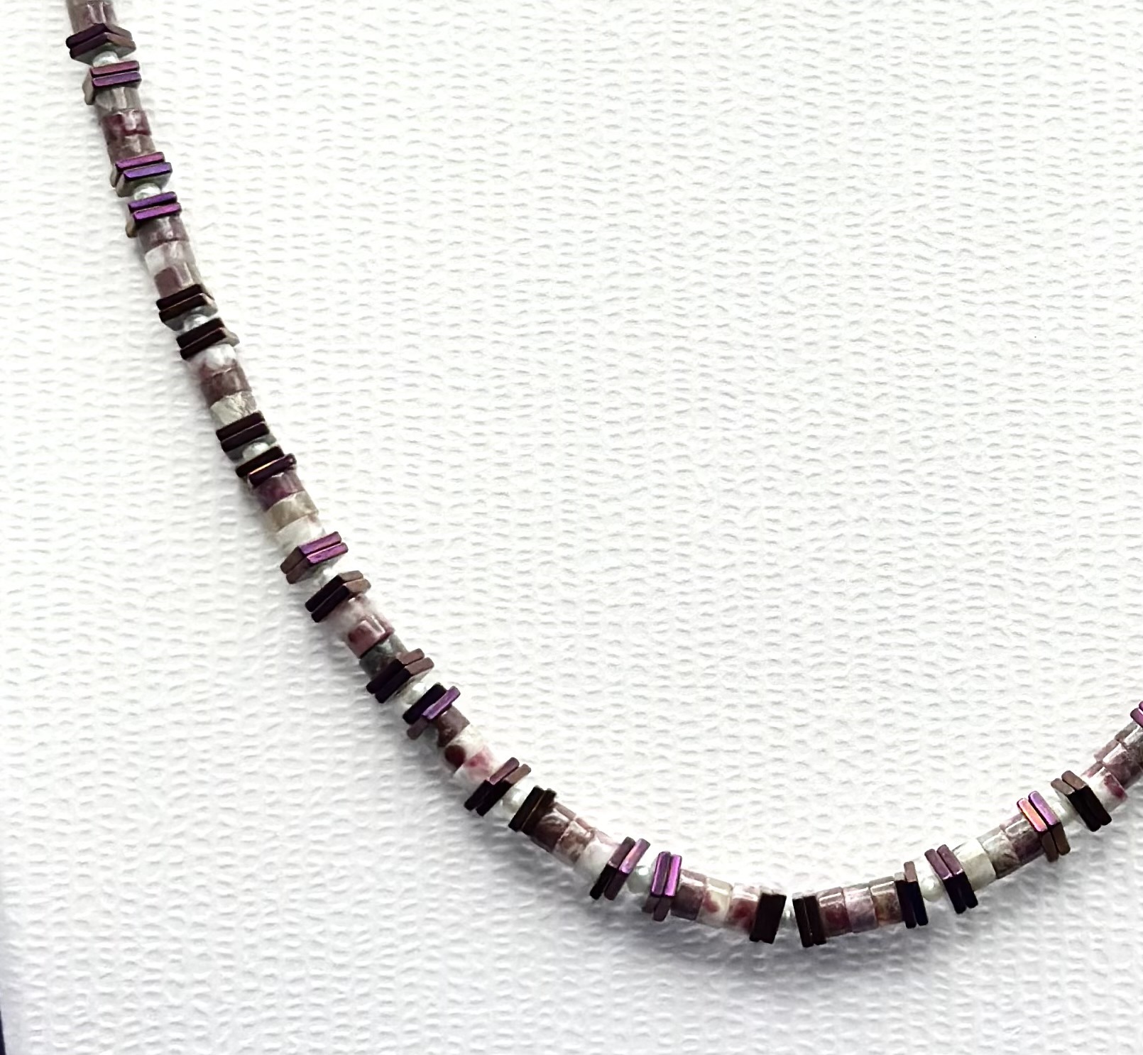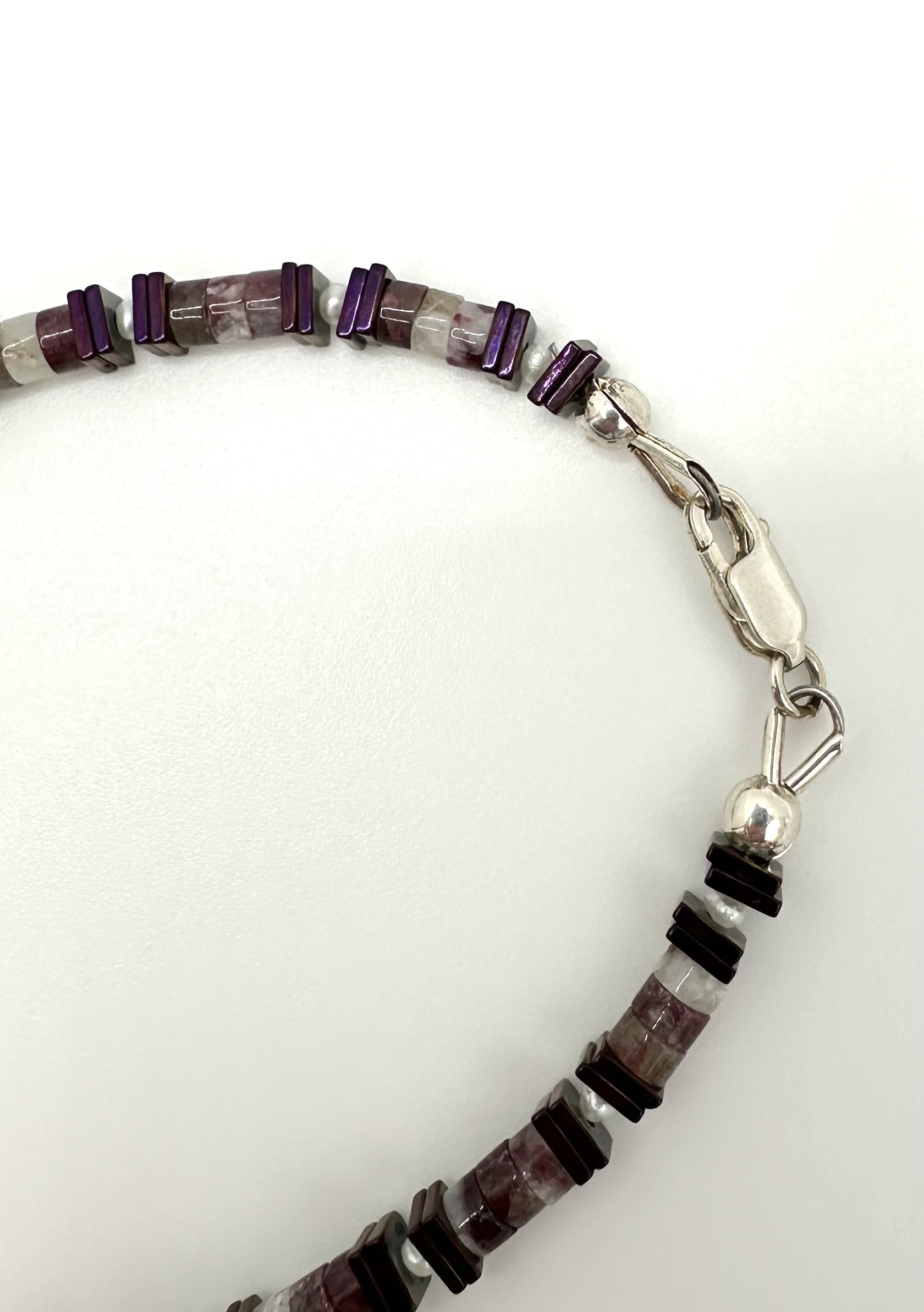 Als Zwischenperlen habe ich 2 mm große Süßwasserperlen und 4 x 4 mm Hämatit Quadrate (gefärbt) verwendet.