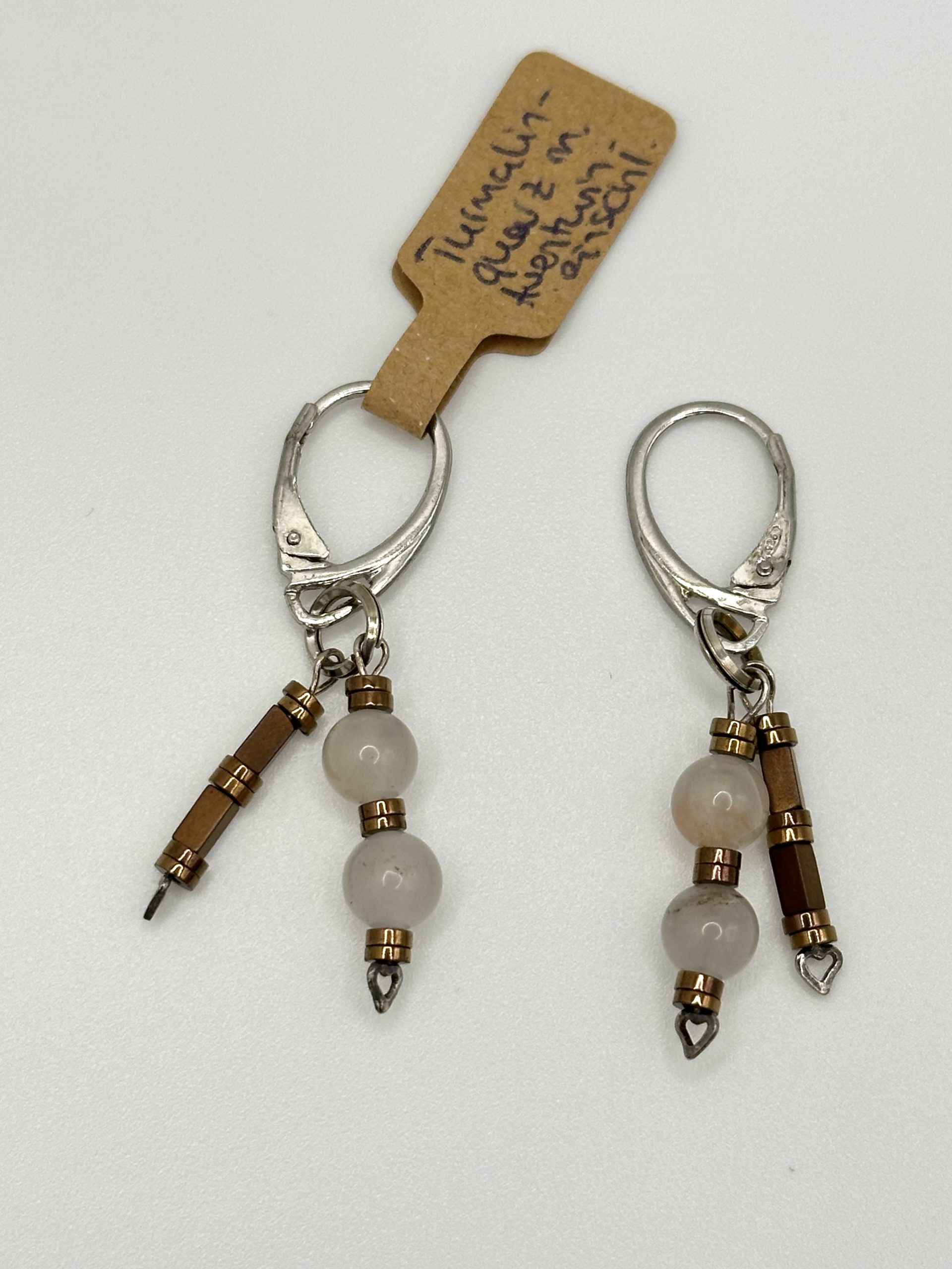 Diese, in liebevoller Handarbeit, gefertigte Ohrringe sind aus 6 mm Turmalinquarzkugeln mit Aventurineinschluss.